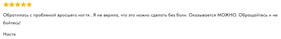 Вот несколько отзывов наших клиентов о процедуре удаления вросшего сегмента: